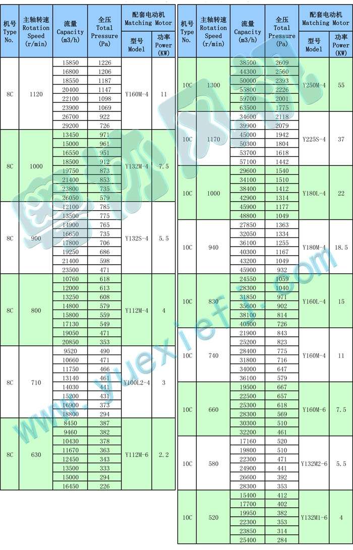 (2)離心風(fēng)機(jī)機(jī)殼:其中№3~12機(jī)殼制成整體;№14~20的機(jī)殼制成二開式,沿中分水平面分為兩半外,用螺栓連接。