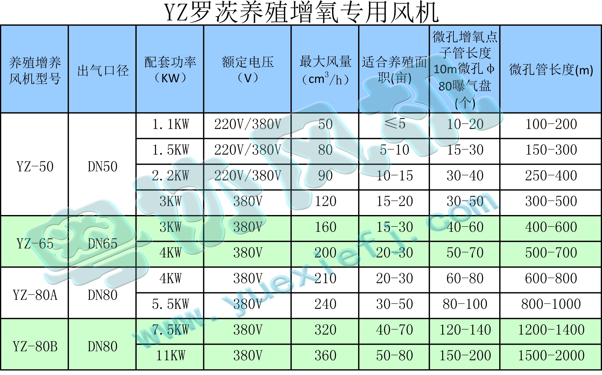 ●YZ-50D型三葉羅茨鼓風(fēng)機(jī)根據(jù)配置電機(jī)的不同,能產(chǎn)生不同的轉(zhuǎn)速、空氣流量、升壓,這將會(huì)對(duì)使用效果產(chǎn)生直接的影響。為了閣下能采購(gòu)到合適的YZ-50D型三葉羅茨鼓風(fēng)機(jī),敬請(qǐng)細(xì)閱下表,以便找到您需要的配置。