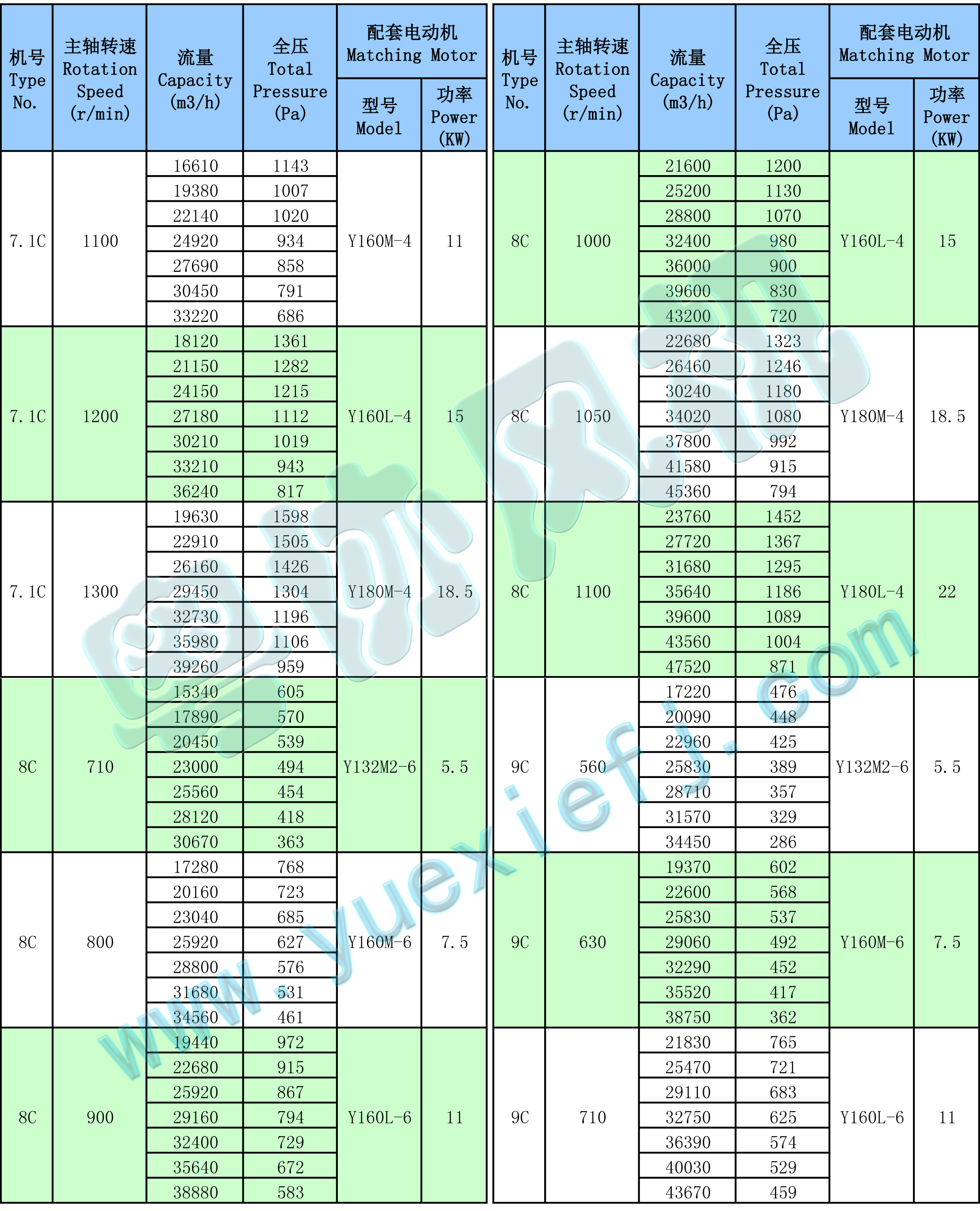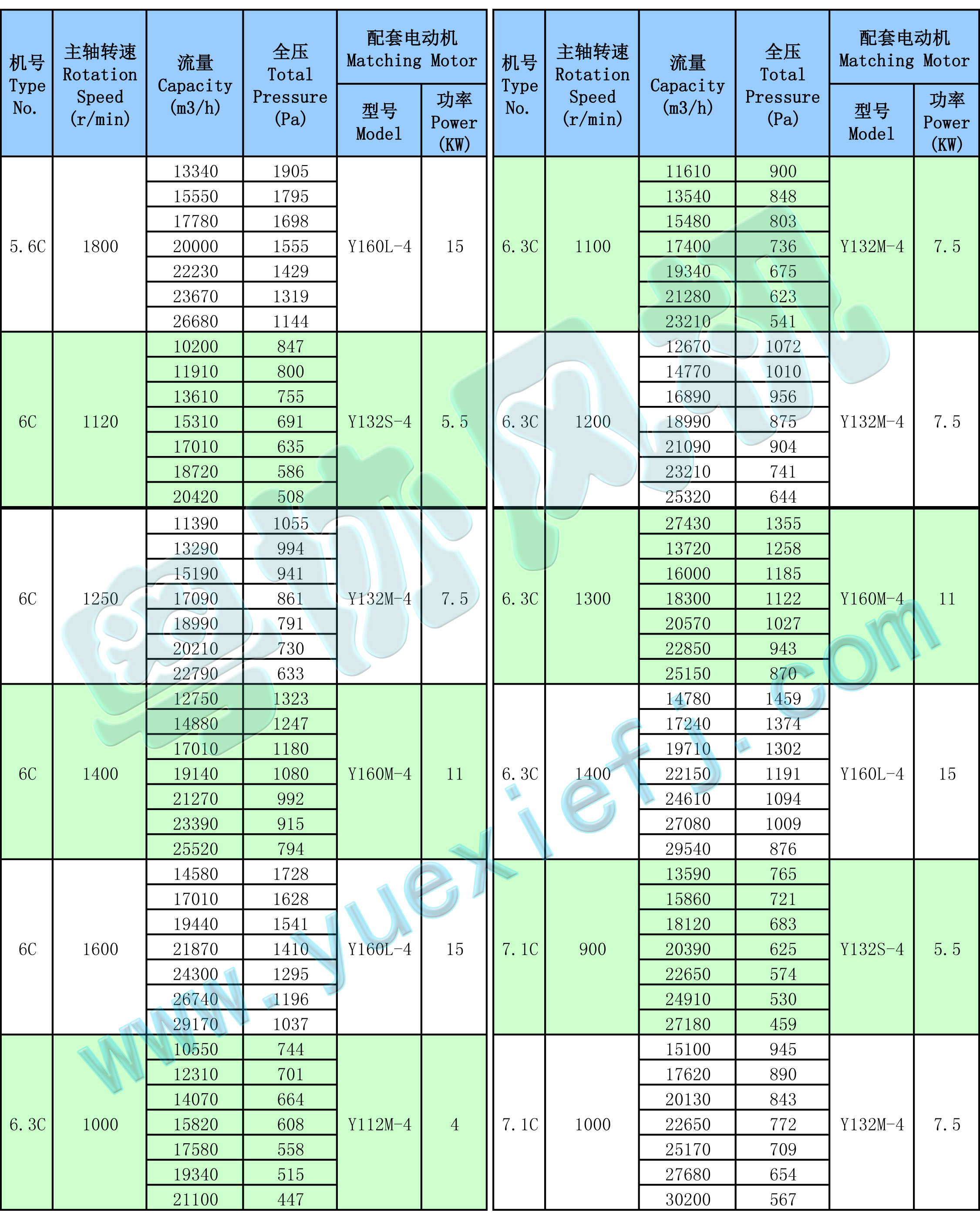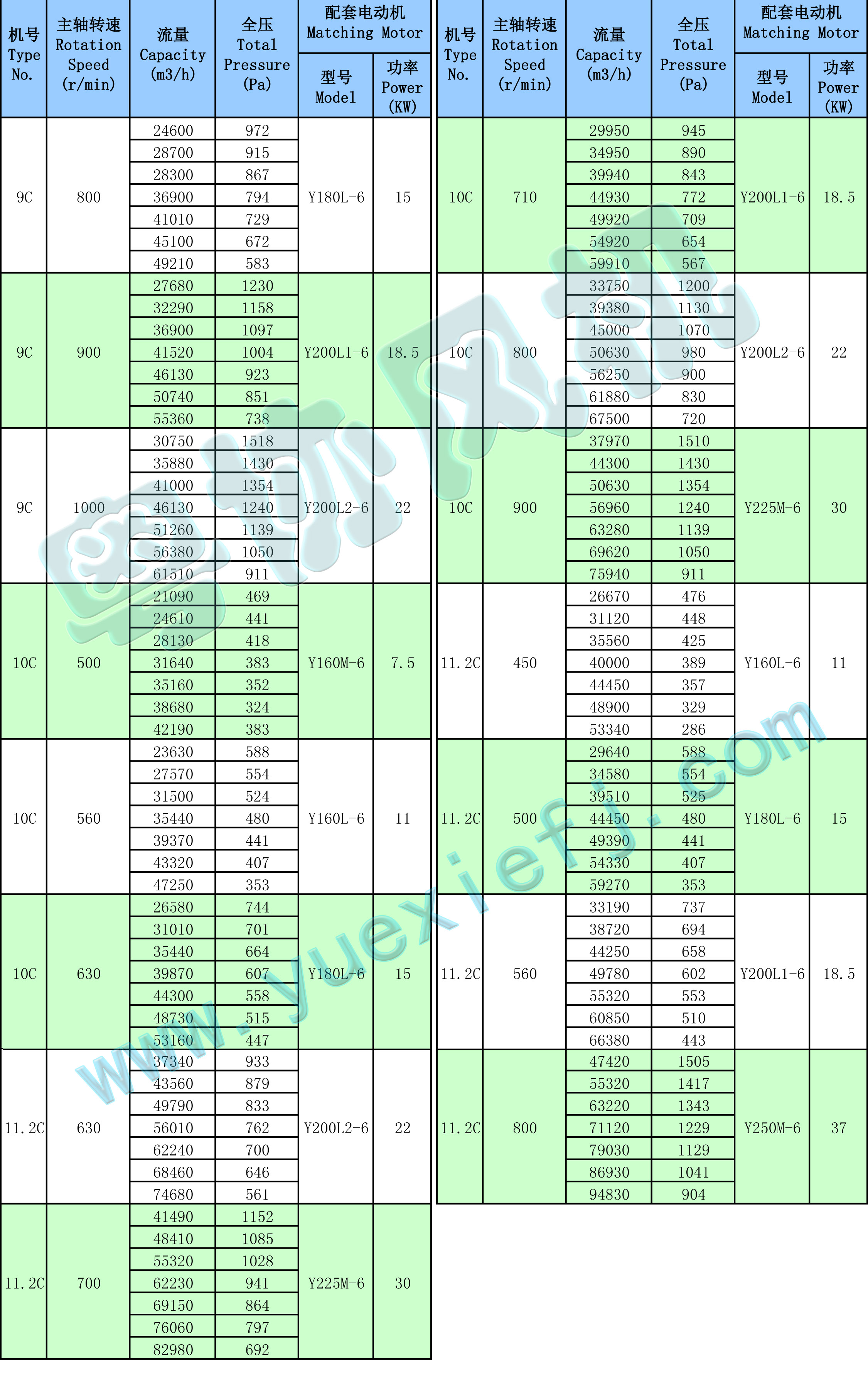 №3A~6A離心風(fēng)機(jī)主要由葉輪、機(jī)殼、進(jìn)風(fēng)口等部分配直聯(lián)電機(jī)組成;№7C~12E除具有上述部分外,還有傳動(dòng)部分。