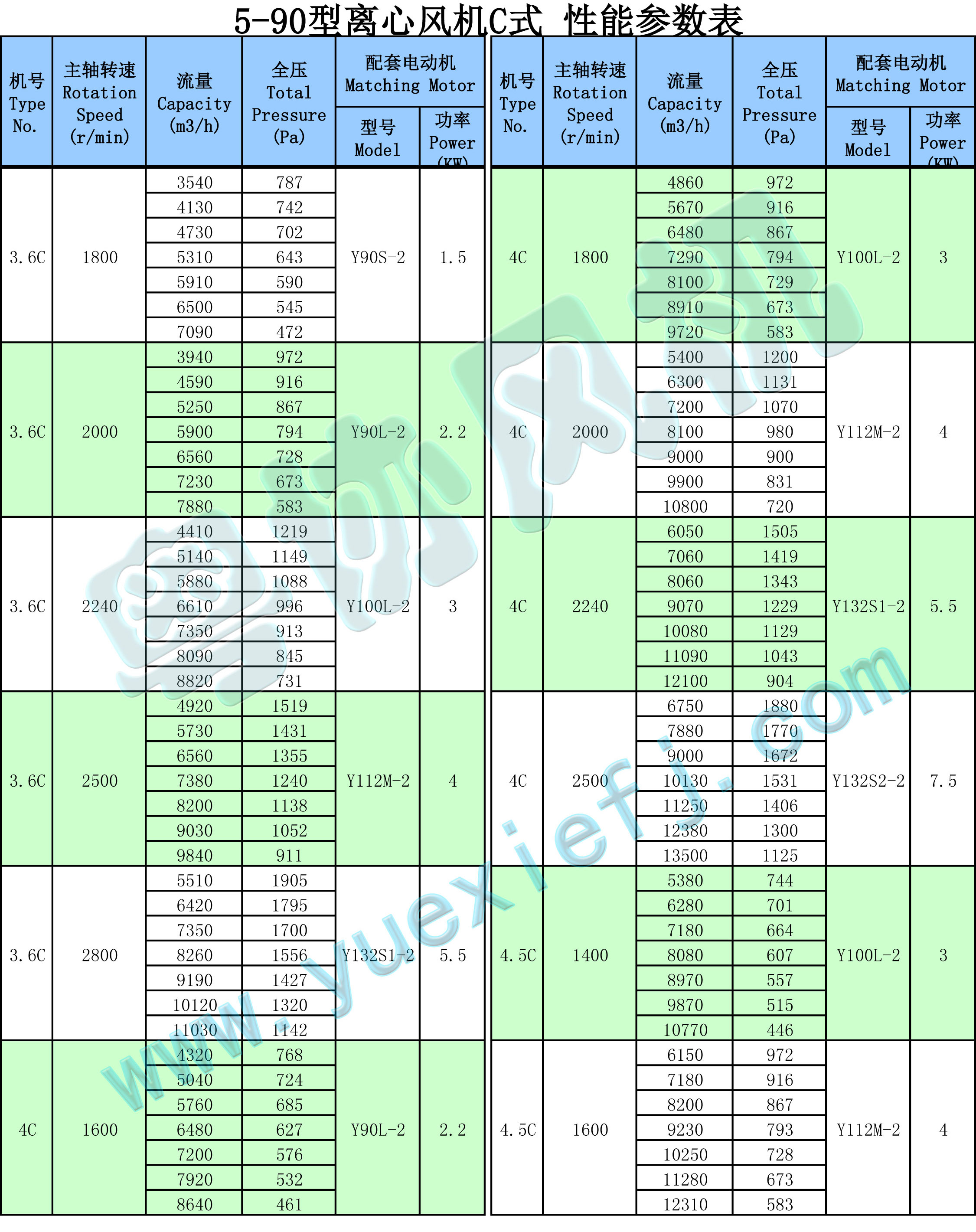 5-90 C型離心風(fēng)機(jī), 一般用于工廠或大型建筑物的室內(nèi)通風(fēng)換氣,它既可輸入氣體,也可輸出氣體。它輸送的氣 體為空氣或其他不自燃、不自爆、無(wú)纏繞性、對(duì)人體無(wú)害、對(duì)鋼鐵材料 無(wú)腐蝕之氣體。氣體內(nèi)不得含粘性物質(zhì),所含塵土及硬質(zhì)顆粒物不大于150mg/m3。氣體溫度不得超過80°C。其他性能相近者亦可選用。
