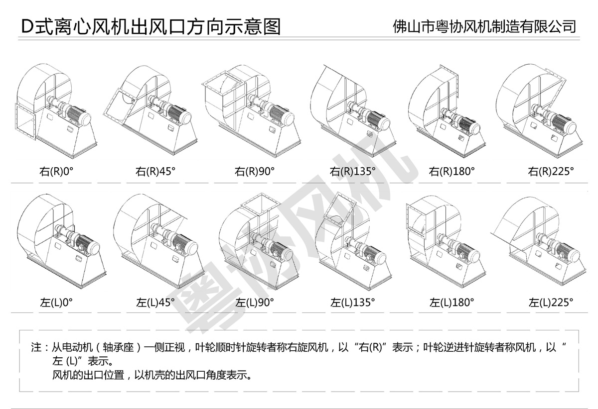 3、風(fēng)機(jī)的出負(fù)口位置,以機(jī)殼的出風(fēng)口角度表示。
